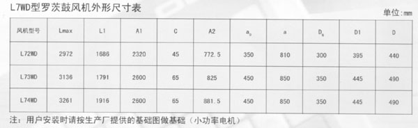 L系列羅茨鼓風機性能參數表